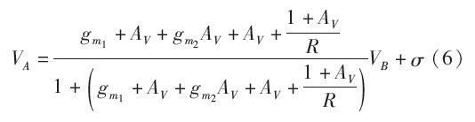 的微小值。由式(6)可以看出,當(dāng)gm1ro2或gm2越大,VA與VB的匹配度越高,電流采樣越精確。值得注意的是,式中出現(xiàn)gm1ro3的平方項,這意味著可以用較小的增益達到高精度。但是,耐壓5 V的低壓管無法在高輸入電壓下正常工作,電路中必須使用大量耐壓40 V的高壓管。然而高壓管的增益與等效輸出電阻很低,無法滿足電流采樣電路的精度要求。