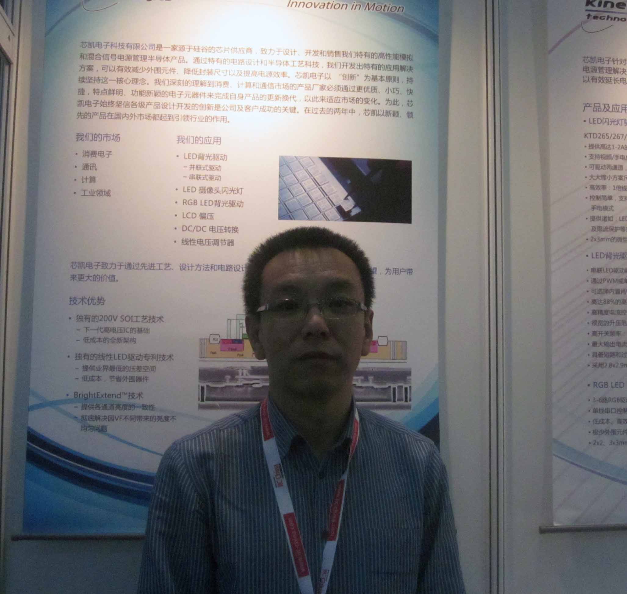 近年來,LED照明行業(yè)高速發(fā)展,世界各國政府的大力推動促使其蓬勃發(fā)展。LED廠商迎來了他們十分重要的發(fā)展機(jī)遇,并相應(yīng)制定了自身在LED領(lǐng)域產(chǎn)品的發(fā)展路線和策略。據(jù)芯凱電子科技(上海)有限公司總經(jīng)理劉宏介紹,芯凱十分重視在LED三大應(yīng)用領(lǐng)域的產(chǎn)品(手機(jī)LED驅(qū)動、中大型尺寸液晶背光驅(qū)動和LED照明應(yīng)用驅(qū)動),并將視為之他們的領(lǐng)跑消費(fèi)電子市場的3大制勝武器。