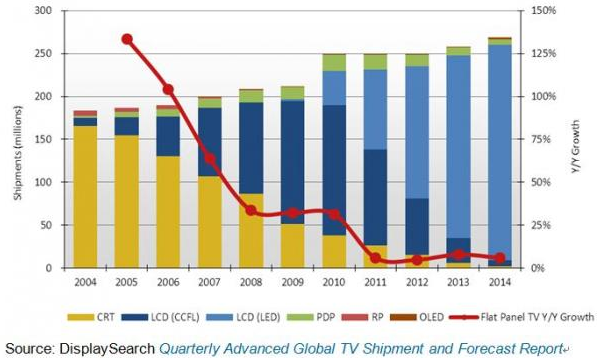 DisplaySearch:液晶電視繼續(xù)蠶食CRT和等離子電視市場(chǎng)