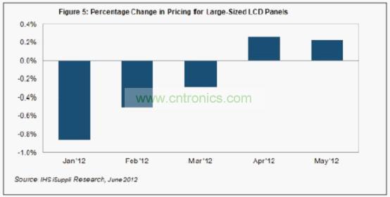 據(jù)IHS iSuppli公司的液晶顯示器(LCD)報(bào)告,廠商繼續(xù)謹(jǐn)慎控制產(chǎn)量和庫(kù)存,以抵消電視、監(jiān)視器和筆記本電腦等主要應(yīng)用領(lǐng)域的疲弱需求,5月大尺寸LCD面板價(jià)格微漲。