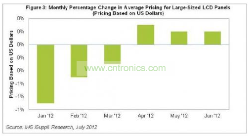幫助推動(dòng)6月價(jià)格上漲的突出因素包括廠商通過(guò)壓低產(chǎn)能利用率來(lái)嚴(yán)格控制產(chǎn)量,以及生產(chǎn)結(jié)構(gòu)發(fā)生變化,導(dǎo)致部分面板型號(hào)出現(xiàn)供應(yīng)緊張。雖然終端需求仍因美國(guó)經(jīng)濟(jì)黯淡、歐元區(qū)債務(wù)危機(jī)和新興市場(chǎng)增長(zhǎng)放緩的影響而保持疲軟,但隨著新的超級(jí)本的推出以及消費(fèi)者為收看倫敦奧運(yùn)會(huì)而購(gòu)買(mǎi)新電視,預(yù)計(jì)今年下半年需求將改善。