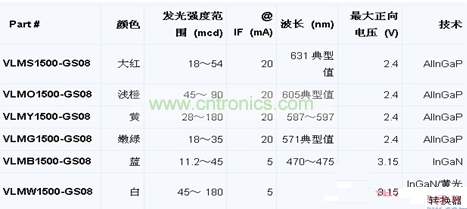 VLMx1500-GS08系列中的藍色和白色LED使用高效InGaN技術(shù),大紅、淺橙、黃色和嫩綠色器件使用最先進的AllnGaP技術(shù),使光輸出提高了3倍。憑借高亮度和小尺寸,VLMx1500-GS08系列LED成為音響和視頻設(shè)備,辦公設(shè)備,液晶屏、開關(guān)和標(biāo)識,室內(nèi)外照明,以及戶內(nèi)和戶外消息牌中為指示燈和背光提供可靠性能的絕佳之選。
