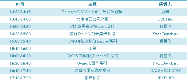 秉承客戶至上,以市場(chǎng)需求為導(dǎo)向,感謝一路上有新老客戶的陪伴支持與理解,才使得凌云公司在前進(jìn)的道路上有足夠的動(dòng)力與方向,看到了美好的視覺(jué)給人們帶來(lái)的豐富多彩的生活。此次答謝會(huì)得到了Teledyne DALSA的高度重視與支持,屆時(shí),DALSA亞太區(qū)OEM技術(shù)總監(jiān)Yvon Bouchard、 DALSA線掃描產(chǎn)品資深產(chǎn)品經(jīng)理何星飛等大咖將會(huì)帶來(lái)國(guó)際前沿的技術(shù)與產(chǎn)品資訊: