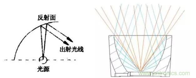 例如我們希望得到一個(gè)超窄光束角,如果使用鹵素?zé)糁椋◤U話熒光燈當(dāng)然不行了…),需要計(jì)算一個(gè)拋物線反射面,抓取燈珠往反射器方向這一半的光,變成平行光發(fā)出,同時(shí)還要遮蓋掉燈珠往外方向的光,以避免影響配光曲線(可參考QR111的結(jié)構(gòu),金鹵燈原理相同)。