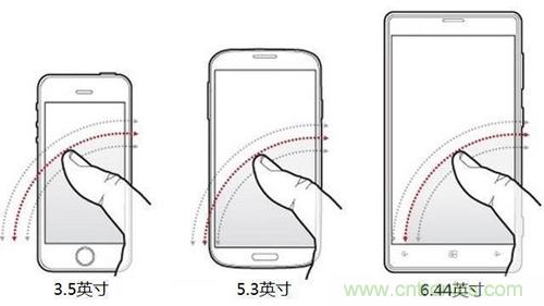 也就是說,最好用的尺寸大約在4-4.5英寸之間,對(duì)于超過這些尺寸的手機(jī),除非你的手掌大于常人,否則單手操作都不方便。而目前市面上的手機(jī)多為5-5.7英寸之間,比最佳的4-4.5英寸大出不少。