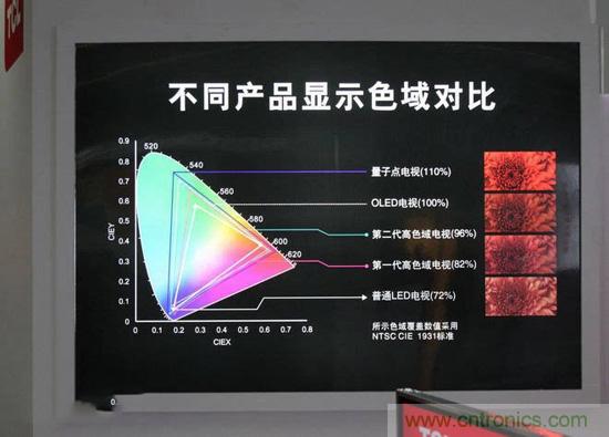 傳說中價格爆炸的OLED電視,色域據(jù)說能超過NTSC的范圍,OLED屏幕比普通LCD屏幕的優(yōu)勢之一也就在這里;而量子點電視的色域則據(jù)說可以超過現(xiàn)在的OLED電視(前不久發(fā)布的TCL量子點電視H9700官方稱其色域為110%NTSC)。