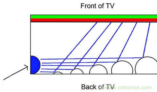 要了解量子點屏幕究竟和OLED屏幕比起來如何,我們還是得先知道量子點技術(shù)的本質(zhì)。傳統(tǒng)的LCD液晶屏幕有背光,這個背光位于相對靠下方的位置,用于照亮整個屏幕。背光有很多種方案,其中一種是背光就用RGB-LED,即藍色、綠色和紅色三種LED。