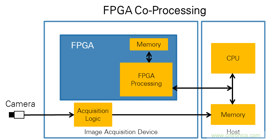 圖1.在FPGA協(xié)處理中,圖像使用CPU進(jìn)行采集后,通過DMA發(fā)送到FPGA,然后由FPGA對(duì)圖像進(jìn)行處理。