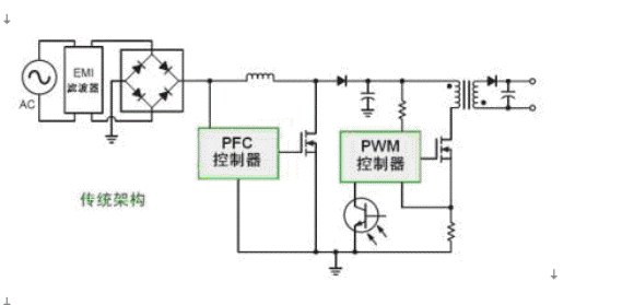 圖3(a):傳統(tǒng)的2段式PFC架構。