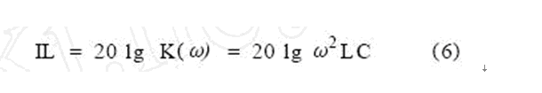 對于小功率的電子設(shè)備而言,LmaxCy,max的值通常為100μHμF,這是一個非常小的數(shù)值。以單級LC濾波器為例,為簡化分析,用電壓衰減來代替插入損耗,可得此時插入損耗為: