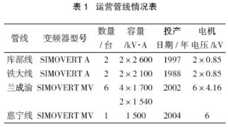 中國石油管道公司運(yùn)營管線應(yīng)用高壓大功率變頻器情況如表1所列。