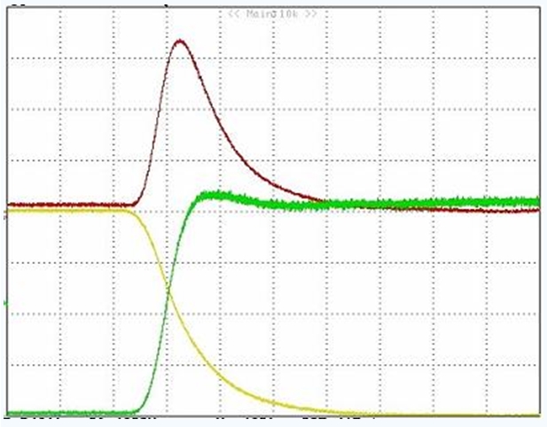 下圖是MOS管導(dǎo)通時(shí)的波形??梢钥闯?,導(dǎo)通瞬間電壓和電流的乘積很大,造成的損失也就很大。降低開關(guān)時(shí)間,可以減小每次導(dǎo)通時(shí)的損失;降低開關(guān)頻率,可以減小單位時(shí)間內(nèi)的開關(guān)次數(shù)。這兩種辦法都可以減小開關(guān)損失。