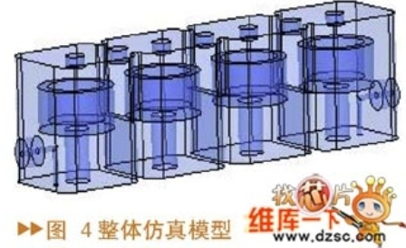 通過與前面計算的耦合系數(shù)理論值的比較,可以選擇合適的耦合孔及耦合螺釘?shù)某跏贾到⒄w仿真模型(圖4)。一般這種初始值進行整體仿真的結(jié)果與期望的濾波器指標有一定的偏差,通過調(diào)節(jié)耦合螺釘?shù)纳疃取⒓畹奈恢靡约邦l率調(diào)諧螺釘?shù)纳疃瓤墒篂V波器達到期望的指標。