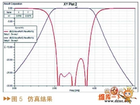 在本文中首先忽略DC-SIR的空腔對諧振桿結(jié)構(gòu)的影響,通過計算得其基本結(jié)構(gòu)參數(shù),再使用Ansoft HFSS場仿真軟件對空腔的尺寸及諧振桿低阻抗部分的長度進行優(yōu)化,并對濾波器的外部品質(zhì)因素Qe、級間耦合系數(shù)和諧振頻率等進行單獨仿真,最后整體仿真,確定濾波器的最終尺寸。測試結(jié)果表明,實際濾波器指標與仿真結(jié)果基本一致,說明了該方法設(shè)計濾波器的可行性。