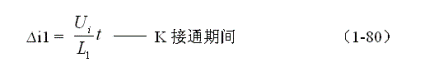 另外,流過正激式開關(guān)電源變壓器的電流i1除了i10之外還有一個勵磁電流,我們把勵磁電流記為?i1。從圖1-18-c)中可以看出,?i1就是i1中隨著時間線性增長的部份,勵磁電流?i1由下式給出: