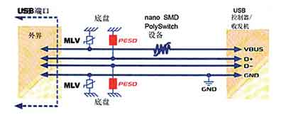 • 在線路中應(yīng)用MLV、PESD、PolySwitchTM元件