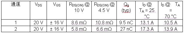 例如,常規(guī)雙MOSFET的PowerPAK 1212-8的導通電阻大約是30mΩ,最大電流不到10A,因此不是可行的方案。單MOSFET的PowerPAK 1212-8的導通電阻降至5mΩ左右。SiZ700DT中低邊溝道的MOSFET具有類似的導通電阻,在10V和4.5V電壓下的導通電阻分別為5.8mΩ和6.6mΩ,在+25℃和+70℃溫度下的最大電流分別為17.3A和13.9A。除此以外,高邊溝道的MOSFET在10V和4.5V電壓下的導通電阻分別為8.6mΩ和10.8mΩ,在+25℃和+70℃溫度下的最大電流分別為13.1A和10.5A。