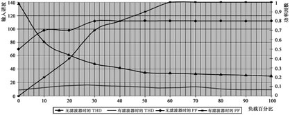 另外,不能在較寬的負(fù)載范圍內(nèi)降低諧波和提高功率因數(shù),它們通常在60%以上負(fù)載率時(shí)才有效,如圖2所示。在負(fù)載率低于40%時(shí),輸入功率因數(shù)將變?yōu)槌?使得與發(fā)電機(jī)不兼容。輸入功率因數(shù)還隨市電電壓變化,參數(shù)表只是標(biāo)稱值。
