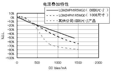 通過直流電流后感值偏執(zhí)特性良好,可以作為各功率電感的特長(zhǎng)。電流-感值偏執(zhí)特性是指功率電感通電時(shí),電流變大引起感值下降的性質(zhì)。這是疊層型功率電感的封閉磁路構(gòu)造導(dǎo)致的磁通量飽和引起的,因此為了克服這個(gè)弱點(diǎn),開發(fā)新技術(shù)以降低疊層鐵氧體中的磁通量分布,從而改善電流的疊加特性,最后反映在各個(gè)產(chǎn)品上。