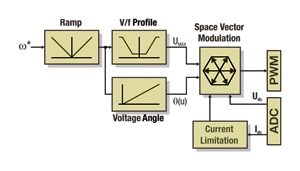 這種簡(jiǎn)化方法的最大優(yōu)點(diǎn)就是不需要傳感器,而且控制算法也不需要角速度或電機(jī)位置信息。速度是與外部負(fù)載的扭矩相關(guān)的,然而,這也是一個(gè)最大的缺點(diǎn),也就是它會(huì)降低動(dòng)態(tài)性能。由于這個(gè)原因,標(biāo)量控制的電動(dòng)機(jī)在負(fù)載瞬時(shí)變化時(shí),就會(huì)輸出遠(yuǎn)遠(yuǎn)超過(guò)需要的扭矩。理論上,使用這種控制方法,能效可能低到50%。