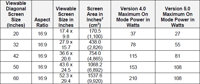 又如平板電視,隨著尺寸的增大,其能耗日益成為業(yè)界關(guān)注的問(wèn)題。“能源之星”針對(duì)電視的4.0版規(guī)范將于2010年5月1日生效,這規(guī)范要求可視屏幕對(duì)角尺寸為32英寸、42英寸和60英寸的平板電視在工作模式的能耗分別不超過(guò)78 W、115 W和210 W,而后續(xù)將于2012年5月1日生效的5.0版規(guī)范則進(jìn)一步要求這幾種尺寸平板電視工作能耗不超過(guò)55 W、81 W和108 W,參見(jiàn)表1。歐洲的EuP指令也有著類似要求。除了要求工作能耗降低,這些規(guī)范還要求降低待機(jī)能耗,因?yàn)閿?shù)據(jù)顯示,可觀的電能是在待機(jī)模式下消耗的。“能源之星”等能效規(guī)范當(dāng)前對(duì)待機(jī)能耗的要求是不超過(guò)1 W,未來(lái)可能要求不超過(guò)0.3 W甚至是不超過(guò)0.1 W。