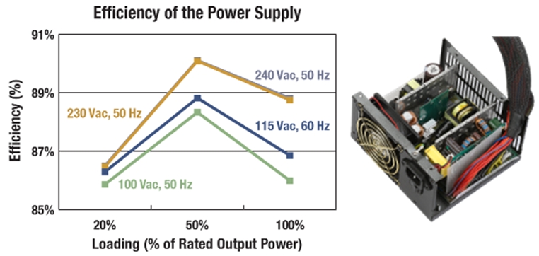 以多路輸出臺(tái)式機(jī)ATX電源為例,80 PLUS銀級(jí)規(guī)范、計(jì)算產(chǎn)業(yè)氣候拯救行動(dòng)(CSCI)銀級(jí)規(guī)范自2009年7月開(kāi)始生效,要求多路輸出臺(tái)式機(jī)ATX電源在額定輸出功率的20%、50%和100%等條件下能效分別達(dá)到85%、88%及85%。后續(xù)的80 PLUS金級(jí)和CSCI金級(jí)規(guī)范將于2010年7月開(kāi)始生效,進(jìn)一步將能效要求提高到87%、90%和87%。