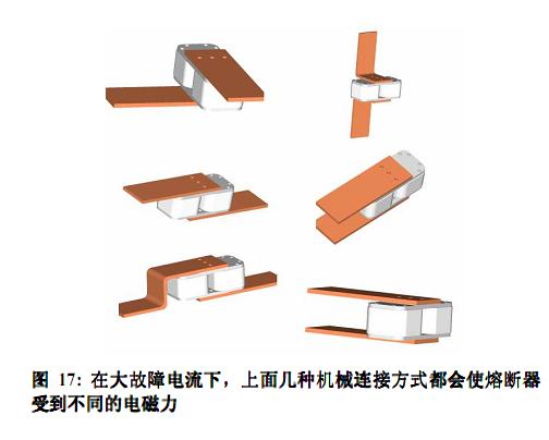 現(xiàn)代生產(chǎn)過程對整流器電流輸出能力要求越來越高,這意味著整流柜中的能量密度越來越大。將現(xiàn)代新型的大功率半導(dǎo)體與5號快熔搭配,可以減少整流器中元件的數(shù)目,每個元件承擔(dān)的電流也將會增加,故障電流水平也將增長,甚至可能達(dá)到接近300KA的水平。在這么大的故障電流下,由于電流通路的不同走向,熔斷器有可能要承受巨大的電磁力。