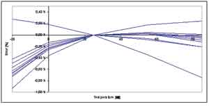 在固定溫度下獲得良好的測量精度并不困難,若在裝配電池組時已對BMU進(jìn)行了校準(zhǔn)便更容易。但實(shí)際情況中,電池組通常都會經(jīng)受各種溫度變化,所以溫度漂移是區(qū)分真正高性能BMU和普通BMU的關(guān)鍵參數(shù)。