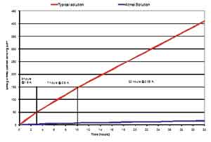 圖6所示為32小時內(nèi),一個10Ah電池的放電周期,分別是3h/1.5A,7h/0.6A,以及22h/60mA。溫度變化為±10℃,使用的是5mΩ的感測電阻。采用帶普通校準(zhǔn)方法的標(biāo)準(zhǔn)BMU,電荷積聚中的誤差大于400mAh,在這個例子中相當(dāng)于10Ah電池的4%以上。愛特梅爾的解決方案由于采用了整合有專有校準(zhǔn)方法的靈活模擬設(shè)計,能夠大大提高精度?;谶@些改進(jìn),誤差可被降至20mAh以下,相當(dāng)于0.2%。