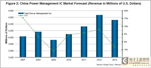 下圖所示為iSuppli公司對中國PMIC營業(yè)收入的預(yù)測。