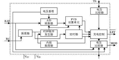 首先,由振蕩器和內(nèi)部振蕩器共同作用到時鐘脈沖發(fā)生器,產(chǎn)生時鐘信號,用來控制D/A轉(zhuǎn)換、-ΔV運算器及其他有關(guān)單元電路,并使之同步工作。該充電芯片在中斷充電電流期間進行采樣,以求采樣的精確。采樣電壓從腳4(BAT)進入電路內(nèi)部,經(jīng)A/D轉(zhuǎn)換后送入-ΔV運算器處理,并將運算結(jié)果送入充電控制單元,隨時控制充電過程。