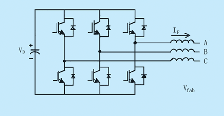 APF是抑制電網(wǎng)諧波和補(bǔ)償無功功率、改善電網(wǎng)供電質(zhì)量的最有效PE裝置。大多數(shù)APF拓?fù)渚秒妷涸茨孀兤鳎⑼ǔR噪娙萜髯鳛橘A能器件如圖1所示。以適當(dāng)選通可控的功率半導(dǎo)體開關(guān),把直流電壓變換成交流電壓。雖然,為合成交流電壓能施加每半周的單脈沖,但對(duì)大部分應(yīng)用中要求的動(dòng)態(tài)性能,今天普遍采用的是脈寬調(diào)制(PWM)。