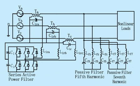 圖7帶并聯(lián)無源濾波器的串聯(lián)型APF拓?fù)?br />