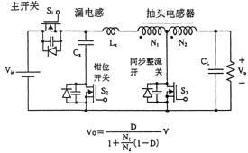 另外,如圖3所示,在采用絕緣變壓器的場(chǎng)合,研究人員還提出了將有源鉗位電路嵌入推挽式轉(zhuǎn)換器中的方案,可在采用48V輸入和1.2V/70A輸出的條件下實(shí)現(xiàn)高達(dá)91%的效率。上面講到的幾種電路方式基本上都是一段式結(jié)構(gòu),最近,出于進(jìn)一步提高效率的考慮,人們正在加緊研發(fā)兩段式結(jié)構(gòu)的轉(zhuǎn)換器。就普通的轉(zhuǎn)換器而言,采用兩段式結(jié)構(gòu)將導(dǎo)致效率下降是人所共知的常識(shí),然而,在低電壓大電流轉(zhuǎn)換器中,對(duì)輸出進(jìn)行同步整流是很普遍的做法,因此,如何實(shí)現(xiàn)同步整流操作的高效化便成為了關(guān)鍵所在。