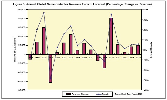 2010年銷售額增幅將達807億美元,這將是半導體產(chǎn)業(yè)有史以來最大的年度銷售額增幅。相比之下,第二大增幅略低于600億美元,那是在網(wǎng)絡泡沫時期的2000年創(chuàng)下的紀錄。
