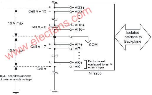 圖2:NI9206能夠承受高達600V的共模電壓,兩組電池單元之間的隔離也可達10V