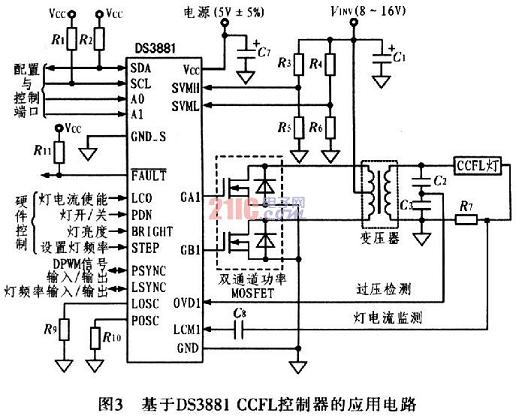 汽車電子的另一特殊要求是低溫工作,DS388l具有一個特別的燈管電流過驅動模式,當溫度很低時,該模式可以迅速加熱燈管,從而實現(xiàn)快速啟動。該器件還具有多種故障檢測,可以監(jiān)測燈管故障、燈管開路、過流、啟動失效以及過壓故障。