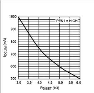 充電速度由下面幾個(gè)因素決定:電池電壓、USB/DC輸入電流限制、充電電流設(shè)置電阻(RCISET)、ISYS以及管心溫度。MAX8671X為了防止輸入過(guò)載和過(guò)熱,可自動(dòng)將充電電流降至某個(gè)低于所設(shè)置的充電速率的數(shù)值。
