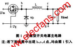 一般來講,正激型開關(guān)電源主電路可用圖1所示的降壓斬波器簡化表示,Ug表示控制電路的PWM輸出驅(qū)動(dòng)信號(hào)。根據(jù)選用不同的PWM反饋控制模式,電路中的輸入電壓Uin、輸出電壓Uout、開關(guān)器件電流(由b點(diǎn)引出)、電感電流(由c點(diǎn)引出或d點(diǎn)引出)均可作為取樣控制信號(hào)。