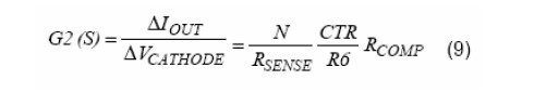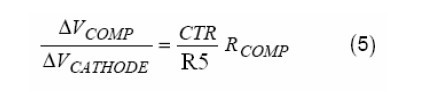 VCATHODE是AS431的陰極電壓,也就是誤差補(bǔ)償放大器的輸出電壓。CTR是光耦的電流傳輸比。R5(原文為R6,譯注)是與光耦的二極管串聯(lián)的限流電阻。RCOMP是AS3842的COMP腳當(dāng)其試圖拉電流超過(guò)它的最大輸出電流時(shí)的輸出阻抗。