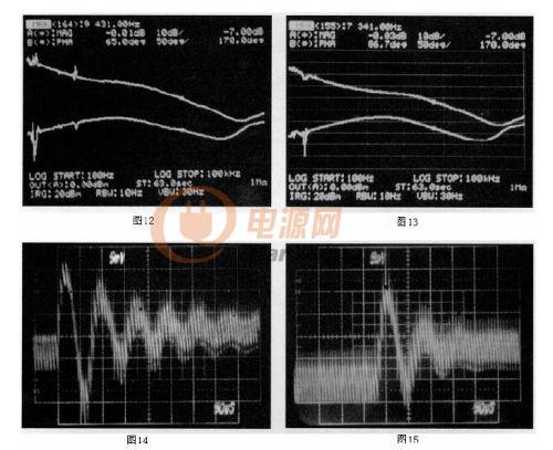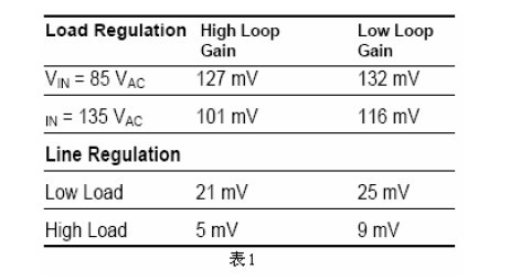 構(gòu)造一個(gè)150W的電流模式正激轉(zhuǎn)換器,經(jīng)過(guò)修正的小信號(hào)環(huán)路特性顯示出它在系統(tǒng)瞬態(tài)響應(yīng)時(shí)所起的作用。圖13(原文誤為圖12,譯注)給出它的增益-相位圖。與圖11所展示的一樣,獲得了相同的博得圖曲線。此增益相位圖顯示這個(gè)系統(tǒng)有86.7度的相位裕量。意味著穩(wěn)定的系統(tǒng)有快速的瞬態(tài)響應(yīng)。圖15(原文誤為圖13,譯注)給出系統(tǒng)的瞬態(tài)響應(yīng)。為了展示相位裕量的作用,通過(guò)增加整個(gè)系統(tǒng)的增益和提高穿越頻率,系統(tǒng)的相位裕量會(huì)減少。穿越頻率提高時(shí)系統(tǒng)的相位裕量在減少。圖12(原文誤為圖14,譯注)給出更高的穿越頻率和更少的相位裕量(65度)時(shí)的系統(tǒng)博得圖。其瞬態(tài)響應(yīng)見(jiàn)圖14(原文誤為圖15,譯注),注意更少的相位裕量導(dǎo)致更大的振蕩和更長(zhǎng)的調(diào)節(jié)時(shí)間。表1比較了這兩個(gè)不同增益大小的系統(tǒng)之間線性和負(fù)載調(diào)節(jié)率的變化。正如前面所述,高的環(huán)路增益得到更緊密的線性和負(fù)載調(diào)節(jié)率。還應(yīng)該注意需在高的相位裕量和較低的環(huán)路增益之間取得平衡。