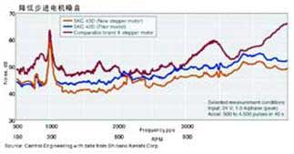 除了由于更強(qiáng)的磁場(chǎng)帶來(lái)的高扭矩,shinanokenshi公司為新型步進(jìn)電機(jī)重新設(shè)計(jì)的疊片機(jī)構(gòu)也提供了低磁場(chǎng)振動(dòng)和根據(jù)運(yùn)轉(zhuǎn)頻率噪音降低3-6分貝。