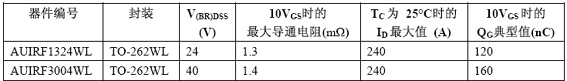 這款新型車用MOSFET系列適合需要低導(dǎo)通電阻(Rds(on))的通用大負(fù)荷/高功率通孔應(yīng)用,內(nèi)燃機(jī)(ICE)汽車電動助力轉(zhuǎn)向系統(tǒng)和電池開關(guān),以及各類微型和全混合動力汽車。新器件采用IR先進(jìn)的硅和封裝技術(shù),在顯著提高性能的同時可與現(xiàn)有的設(shè)計標(biāo)準(zhǔn)相匹配。