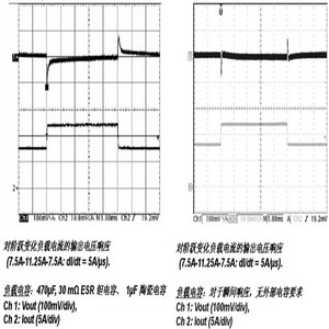 從動(dòng)態(tài)響應(yīng)的圖形對(duì)比中可以看到,無(wú)論是輸出過(guò)沖,還是恢復(fù)時(shí)間,MAX5051模塊都具有明顯的優(yōu)勢(shì)。