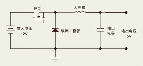 為降壓型開關(guān)電源選擇電感器時(shí),需要確定最大輸入電壓、輸出電壓、電源開關(guān)頻率、最大紋波電流、占空比。下面以圖2為例說明降壓型開關(guān)電源電感值的計(jì)算,首先假設(shè)開關(guān)頻率為300kHz、輸入電壓范圍12V±10%、輸出電流為1A、最大紋波電流300mA。