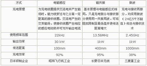 長野日本無線公司,于2009年8月宣布開發(fā)出了基于磁共振的充電系統(tǒng)。與電磁感應(yīng)方式相比,磁共振方式具有傳送距離長、停車誤差要求低等優(yōu)點(diǎn)??梢栽?600mm的傳輸距離內(nèi)確保90%的傳送效率。但目前的傳送功率還比較?。s1kW左右),擬定從叉車等使用范圍進(jìn)入市場,伴隨著技術(shù)成熟程度和傳送功率的提高,有望很快進(jìn)入電動(dòng)車電充電領(lǐng)域。
