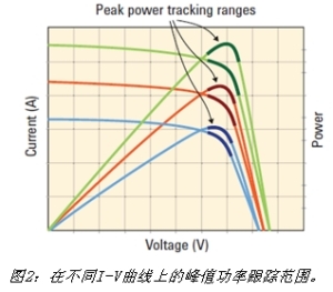 如果目標(biāo)是為了驗(yàn)證峰值功率追蹤電路的性能,開發(fā)出能在不同環(huán)境條件下始終工作在I-V曲線最大功率點(diǎn)上的太陽能逆變器,在電路的設(shè)計(jì)和開發(fā)中就必須考慮峰值功率跟蹤范圍和跟蹤頻率。峰值功率跟蹤范圍是I-V曲線最大峰值功率點(diǎn)附近的一段區(qū)間,這也是逆變器峰值功率跟蹤電路算法的工作區(qū)間,跟蹤頻率則是工作區(qū)間內(nèi)曲線的擺動速率,如圖2所示。為確保逆變器在模塊I-V曲線變化時始終能夠找到最大峰值功率點(diǎn),它必須具有足夠?qū)挼母櫡秶妥銐蚋叩母欘l率。為驗(yàn)證設(shè)計(jì)的有效性,需要根據(jù)精確復(fù)現(xiàn)太陽能電池板的I-V曲線來驗(yàn)證在不同曲線下逆變器能否穩(wěn)定地工作在峰值功率點(diǎn)附近。
