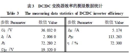 (5)DC2DC 的變換效率。分別用5 位半的數(shù)字表測得負載電壓和電流與DC2DC 變換器的輸入電壓和電流,然后計算出輸入和輸出功率,便可計算出效率。