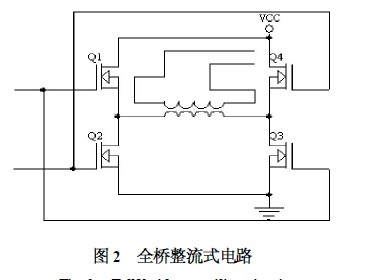 (2) 全橋整流式電路。圖2 所示為全橋整流式電路。該方案采用了4 個MOS 管,工作時對管同時導(dǎo)通,半周期內(nèi)Q1、Q3 導(dǎo)通,Q2、Q4 截止,然后Q2、Q4 導(dǎo)通,Q1、Q3 截止。這樣的工作方式使每半周期都有2 個MOS 管來分壓,對MOS管的耐壓要求就降低了,適用于高壓場合,但由于使用了4個MOS 管,使得損耗功率增加,開關(guān)損耗同時增加??紤]到農(nóng)業(yè)機械一般功率較大,采用該方案必然降低電能利用率,導(dǎo)致大量的能耗損失。