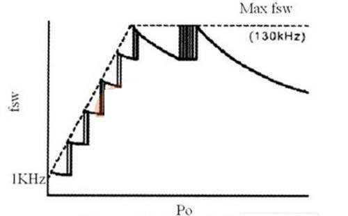降低開關(guān)電源功耗的主要途徑是降低開關(guān)損耗和控制電路功耗。減少控制電路功耗可通過選擇功耗低、功能強、所需外部元件少的控制芯片及簡化外部控制電路來實現(xiàn)。這里主要討論降低開關(guān)損耗的措施。許多電子產(chǎn)品在使用中常處于輕載或待機狀態(tài),而開關(guān)電源*率開關(guān)管的開關(guān)頻率都很高,當開關(guān)電源工作在輕載或待機狀態(tài)下時,開關(guān)損耗成為主要損耗,相對損耗大大增加,效率降低。降低輕載損耗的有效方法是在輕載狀態(tài)下降低開關(guān)電源的開關(guān)頻率,從而使輕載效率保持與滿載時相同。圖1中,隔離變換控制電路采用準諧振電源控制器FA5531P及外圍元件構(gòu)成。FA5531P的開關(guān)頻率不是由他激振蕩器決定的固定開關(guān)頻率,而是由自激振蕩決定。芯片在正常負載時保持固定頻率的準諧振開關(guān)狀態(tài),輕載時自動降低開關(guān)頻率以減少空載損耗,最低開關(guān)頻率可降至1KHz,F(xiàn)A5531P開關(guān)頻率與輸出功率關(guān)系如圖3所示。FA5531P的另一個特點是具有內(nèi)部啟動電路,從而也降低了待機功耗。FA5531P自身功耗很低,工作電流僅1.5mA,集成度高,只需極少的外部元件。